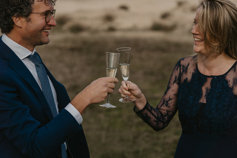 Daarom trekken ze nu, vijf jaar later, nog eens hun trouwkleding aan. We maken te gekke foto's in de Waterleidingduinen bij de Zilk.