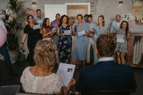 Na het ja-woord (met koeien als toeschouwers!) vertrokken we met elkaar naar Gasterij de Kwakel voor de bruidstaart, het diner, toetjes, een kinderdisco en afsluitend een gigantisch feest met 200 man.