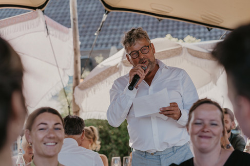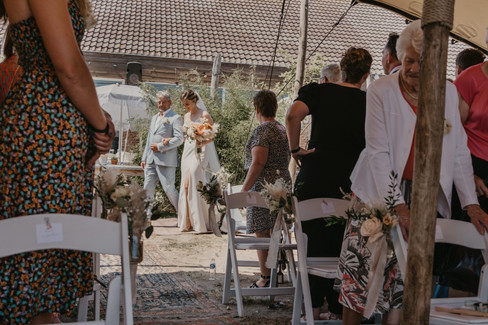 Je hoopt natuurlijk altijd op goed weer, maar Elsa & Adwin hadden misschien wel iets té hard geduimd. Het was een stralende, zonovergoten dag, waarbij ook veel zonnebrand uitgerukt werd. Alle lieve familie en vrienden verzamelden zich bij MAMA's in Noordwijkerhout, nu bekend als trouwlocatie De Volière om deze prachtige bruiloft te vieren.